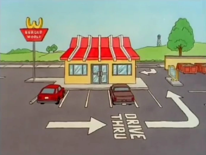 Burger World is a recurring location in Beavis and Butt-Head. It is a fast-food restaurant where Beavis and Butt-Head both work.